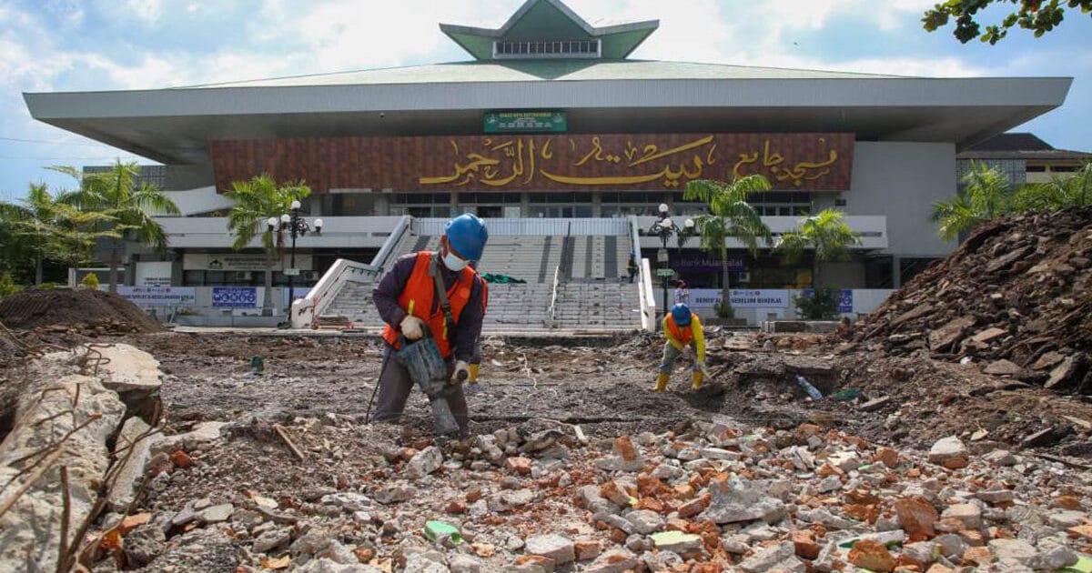 Pekerjaan meliputi beberapa aspek, seperti penguatan struktur masjid, penguatan struktur menara, penataan bagian depan masjid, perbaikan interior masjid, pembangunan gedung MUI, basement parkir, perbaikan sekolah dan lainnya.